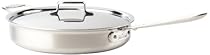 All-Clad Brushed Stainless D5 6-quart saute Pan is deeper than a traditional fry pan, the saute pan features a large surface area and tall, straight sides that hold in juices, prevent splattering, and allow for easy turning with a spatula. Ideal for a wide range of foods including chicken breasts and fish fillets, the saute pan offers the convenience of browning or searing, then deglazing or finishing in liquid; all in one pan. The lid locks in moisture and heat to thoroughly finish meats on the stove top or in the oven. Includes a loop handle for comfort and ease. Flared edges for drip-free pouring.