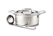 All-Clad Brushed Stainless D5 3-quart soup pot with lid and ladle is essential for every kitchen. The soup pot features high sides that slow the evaporation of liquids, providing the ideal design for creating a variety of stocks and soups. The wide bottom of the pan allows for sauteing of ingredients before the addition of liquids for delicious soups and stews.