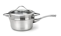 Calphalon Contemporary Stainless Steel 2.5 qt.Sauce and Double Boiler. Style-conscious home chefs with taste for all things modern have a new line of cookware to call their own: Calphalon Contemporary Stainless. Calphalon Contemporary Stainless is the first cookware to bring stunning, contemporary design into the home kitchen. Crafted from lustrous, brushed stainless steel and featuring clean lines and curvaceous silhouettes, Calphalon Contemporary Stainless expresses the very soul of modern style. Along with sophisticated style, Calphalon Contemporary Stainless delivers the professional performance you expect from all Calphalon cookware. A full aluminum core, sandwiched between the stainless steel interior and exterior of each pan, provides superb conductivity and even heating throughout the vessel. So you'll enjoy fabulous results on the stovetop, in the oven and in the broiler. Handles stay cool and comfortable on the stovetop and glass covers make it easy to keep an eye on what you're cooking. Calphalon Contemporary Stainless is also dishwasher-safe for easy clean-up.The 2.5qt Sauce Pan and Double Boiler features a sleek curved vessel, stay cool handle and stainless steel double boiler insert. Dishwasher safe.
