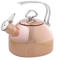 Our classic teakettle rocketed to popularity when introduced over 30 years ago. The accolades continue for this timeless Chantal original, sure to remain a design icon and home favorite for the foreseeable future. The immediately recognizable shape and characteristic stainless steel handle say it’s Chantal, and our copper version is truly breathtaking. Unlike many other copper kettles currently available in the market, our copper kettle will not need to have any lacquer removed before its first use. Featuring our exclusive two-tone Hohner Harmonica whistle, this kettle doesn’t just whistle – it sings! Like all our standard-size kettles, our copper classic teakettle boasts a functional capacity of 1.8 quarts. Chantal copper teakettles are perfect for all stove tops, Including magnetic induction. Limited warranty.