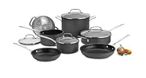 The kitchens of France were the inspiration behind the elegant Cuisinart Chef's Classic Non-Stick Hard Anodized Cookware collection. Cuisinart expertise was the inspiration behind this spectacular 11-piece collection. We know our way around the kitchen, and have included everything you need to perfectly perform all the basic cooking tasks, large or small. From reheating a single portion of soup, to preparing appetizers, entrees and side dishes for the entire family, you'll find every tool you need in this deluxe set. Cuisinart Chef's Classic Non-Stick Hard Anodized Cookware features durable hard anodized construction for fast and even heating. We guarantee it with a lifetime warranty. Set includes the following: 1-1/2 quart saucepan with glass cover, 2-1/2 saucepan with glass cover, 3 quart saute pan with glass cover, 8 qt stockpot with glass cover, 8-inch skillet, 10-inch skillet and 18cm steamer insert.