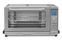 The Cuisinart TOB-135 Deluxe Convection Toaster Oven Broiler is designed with 9 functions, including convection for making delicious cakes, potatoes and roasts. Sized to accommodate a whole chicken, a 12-inch pizza, or 6 slices of bread, the unit is controlled by an electronic dial and LED buttons. The large blue back-lit LCD allows for the quick and easy setting of function, temperature, and cook time. The Exact Heat sensor maintains precise oven temperatures, and the Always Even shade control ensure that toast consistently turns out the selected shade.