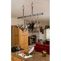 A simple and stylish solution for narrow spaces.Sliding hanging straps make this rack easy to install just about anywhere.Includes two 4-inch C-rings and 6 angled pot hooks.Utensils, extension hooks and pots are not included.