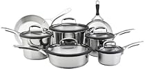 This cookware set is an exceptional value, including all of the pans needed to equip your kitchen with the most used cooking pieces. As the set contains only basic pieces, you'll really use each and every pan. It includes saucepans for whisking a homemade sauce or cooking your morning oatmeal, a big stockpot for soups, stews or boiling pasta, and skillets (probably the most used pan in any kitchen) that will help you turn out perfect crepes or a simple grilled cheese sandwich. The set also includes a saute pan, a wide, straight-sided pan that can perform many of the functions of a skillet but features deep sides for extra capacity, perfect for one dish meals. Start your dish in this pan by sauteing onions and browning meat, then add your liquid and other ingredients into the same pan to finish on the stovetop or in the oven.