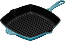 Le Creuset Enameled Cast-Iron 10-1/4-Inch Square Skillet Grill, Caribbean From savory vegetables to mouthwatering steak, chicken and shrimp, the square Skillet Grill gives all the delicious flavor of an outdoor grill, then presents foods beautifully at the table. High ridges allow excess fat and grease to drain, and spouts on two sides allow for drip-free pours. Ribbed cooking surface drains away excess fatLe Creuset's durable black enamel finish (no seasoning required)Even heat distribution and superior heat retention Colorful, long-lasting exterior enamel that resists chipping and crackingA strong iron handle provides a steady grip during use and transfer Each piece from our extensive range of high-quality enameled cast iron cookware is designed for ease and versatility of use, fitting in with all styles of cooking, all types of cooking appliances and any style of kitchen or dining decor. Please read this section before using your cookware for the first time. The information it contains will help you achieve the best possible cooking results.