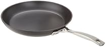 Le Creuset Forged Hard-Anodized 12-Inch Nonstick Shallow Fry Pan From Fluffy omelettes to perfectly seared meats, Le Creuset forged hard-anodized pans deliver non-stick performance with a seamless reinforced coating that will never chip or flake. The hot-forging process forms a strong bond between the pan and its nonstick coating, creating a pan that will stand up to years of use.Hot-forging manufacturing process ensures pans will never warpAn induction compatible, magnetic stainless steel base ensures superior performance on any cooktopPans are oven-safe up to 500 degrees F (tempered glass lids are oven-safe up to 425 degrees F)Hollow, stay-cool cast stainless steel handles minimize heat transfer and fit comfortably in handSide handles and assist handles feature stainless steel rivets for durabilityNonstick coating is reinforced and safe for dishwashersA convenient side handle hole allows for hanging storageEach Forged Hard-Anodized (FHA) pan is made from a heavy-gauge forged aluminum with a strong, durable finish that will withstand the demands of everyday use. Each pan absorbs and distributes heat evenly and efficiently, so there are no hot-spots during cooking. The specially-constructed base incorporates a magnetic stainless steel disk that gives extra strength and stability to the pan.
