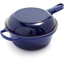Innovative saucepan features a lid that doubles as a fry pan, so you'll get two Le Creuset pans for one great price. This versatile combo lets you fry up bacon while cooking oatmeal or sauté veggies to add to simmering soups. Or simply use the interlocking lid to retain heat and moisture while you cook. Newly updated design features a larger 2½-qt. capacity, enhanced ergonomic handles, and a mess-free pouring lip. Space-saving set is perfect for small kitchens or for cooks with overcrowded cabinets. Suitable for all heat sources: electric, gas, ceramic and induction. Dishwasher safe, but hand washing recommended. Enameled cast-iron construction. 2½-qt capacity, 8" diameter skillet/lid. Limited lifetime warranty. Made in France..