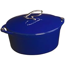 The "L" Series Dutch Oven is not only excellent for cooking, it is also the ideal vessel to serve meals in.Complimenting the stylish porcelain finish is the graceful "L" shaped stainless steel handle on the lid, providing a generous grip and perfect balance when handling while cooking or when cleaning.It can be used on all stove tops and in ovens, including induction, at temperatures below 500 degrees F.Not to be used in the microwave or on outdoor grills / campfires.Where the lid and pot meet, the visible black edge is a matte enamel undercoat more chip resistant than the primary colors.The white enamel cooking surface is FDA approved. Porcelain enamel eliminates the need to "season" cast iron, creating a non reactive surface perfect for all cooking techniques, as well as marinating, refrigerating or freezing.The corrosion resistant No. 304 stainless steel handle remain cool-touch while cooking on stovetop at moderate heat.6 Qt, liberty blue.