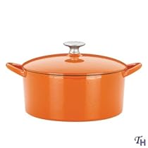 This 6 quart Dutch Oven is created from cast iron, coated in enamel so there is no need for you to season the metal before using. This piece is compatible with any stove top, whether it?s electric, induction or gas and the inner lining makes for a surprisingly easy clean up, no matter what you?re cooking. The heavy duty base and walls conduct heat evenly for sweating your aromatics, bringing stocks to a boil, and browning meats in record time.