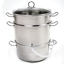 Extremely versatile professional gauge stainless steel steamer and juicer. Water pot with encapsulated base, to provide even heating,makes for great stovetop cooking. Perfect for baking and serving your favorite casseroles - oven safe to 400°F/205°C. A multipurpose steam juicer and steam cooker for vegetables, fish, seafood , and poultry. Large capacity 11.75QT. steamer insert, 4QT./3.8L juice kettle and 7.25QT. /6.75L water pot.