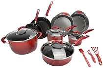 Have all the tools you need for cooking your next great meal with this Rachael Ray 15-Piece Cookware Set. Beautiful and functional, the porcelain exterior of this set adds a punch of color to your kitchen. This Rachael Ray 15-Piece Cookware offers a nonstick interior that lets food slide off with ease and makes cleanup quick and easy. Its grippy silicone handles provide a comfortable grip and are oven safe up to 350 degrees.Dishwasher-safe for convenience, this Rachael Ray 15-Piece Cookware Set is suitable for ovens with glass ceramic, gas and electric ranges. This Rachael Ray Cookware set comes complete with a 1-Quart Covered Saucepan, a 2-quart covered saucepan, a 6-quart covered stockpot, a 3-quart covered sauté pan, an 8.5" skillet, a 10" skillet, two 9" Oven Lovin' rounds, a medium spatula, a small lil' devil and a veg-a-peel.