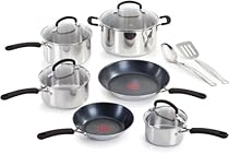 fal C784SC64 Stainless Steel with Thermo-Spot Heat Indicator Dishwasher Safe 12-Piece Cookware Set includes 5qt dutch oven, 8" and 10.25" frypan, 1 qt 2 qt and 3qt saucepan, 2 tools.