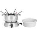 Trudeau's Alto 3 in 1 electric fondue set includes an 84-ounce stainless steel pot, white stoneware double boiler insert (for cheese and chocolate), powerful 1500 watt electric base with thermostat and power indicator light, easy-release power cord, stainless steel fork guide, six stainless steel fondue forks with color coded tips, recipe and instructions. Set comes packaged in attractive photo gift box.Trudeau does home entertaining right� with fondue.As the perfect party dish, fondue lets guests be their own personal chefs; it is delicious, healthy and fun any time of year. It's perfect for meat, cheese or chocolate; party, dinner or holiday celebration. Turn ordinary into extraordinary with Trudeau's alto 3 in 1 electric fondue set.
