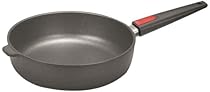 Woll’s advanced titanium reinforced nonstick cooking surface has superior durability and excellent cooking performance. It is guaranteed not to crack, blister, bubble or separate. Titanium is one of the hardest metals and is used in many high tech products such as fighter planes, surgical instruments, hip replacements and golf clubs. The Titanium reinforced nonstick cookware is produced in our state of the art facility in Germany. For healthier cooking, no oils or fats are required. The extra thick body and base is made of stress relieved chill cast aluminum. This process allows for fast and even heat distribution, and better browning, searing and deglazing. These pans are milled perfectly flat for use on all types of ranges; gas, ceramic, electric, radiant and halogen. These pans are guaranteed not to warp. Patented German designed and engineered detachable handle insures easy click-on and click-off, for stove to oven cooking or storage. Each pan has a cast-in threaded brass insert to guarantee that the handle screws never strip or loosen. Ideal for anywhere storage or cooking space is at a premium. With the handles removed it fits easily into the sink or dishwasher.Vented safety glass covers with Stainless Steel rims are available for separate purchase. Titanuim Nowo cookware is oven safe (remove detachable handle, side handles and cover knobs are safe to 500F/260C).Nowo pans are metal utensil and, dishwasher safe plus are PFOA free. Made in Germany with a limited life time warranty.